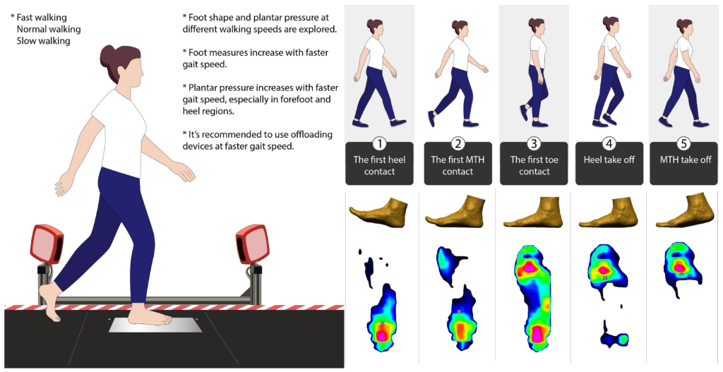 This study analyzes foot deformation and plantar pressure in diabetic patients at varying walking speeds. It shows increased pressure in forefoot and heel at higher speeds, stressing the need for suitable footwear and offloading devices to protect against injury and ensure comfort. Read more